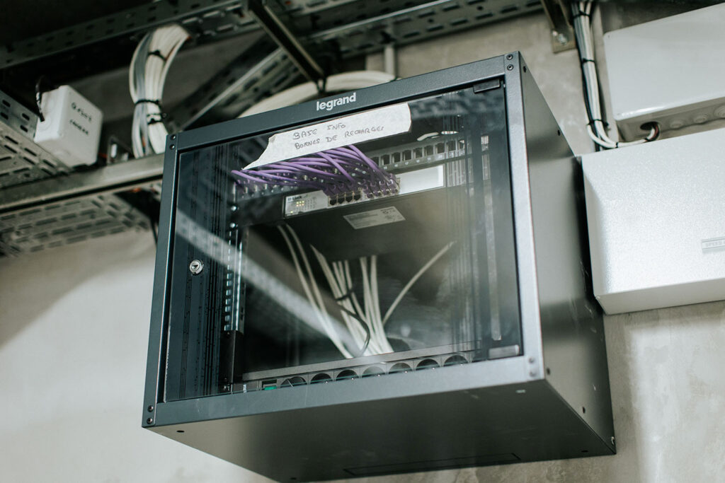 Notre entreprise vous fournit la baie de brassage adaptée à la configuration de votre bâtiment. Nous assurons également la réalisation complète du câblage et l’installation murale des prises. Chaque installation est entièrement documentée avec un recettage précis et détaillé, vous permettant d’identifier clairement les correspondances entre les prises, les lignes et les équipements connectés à la baie.